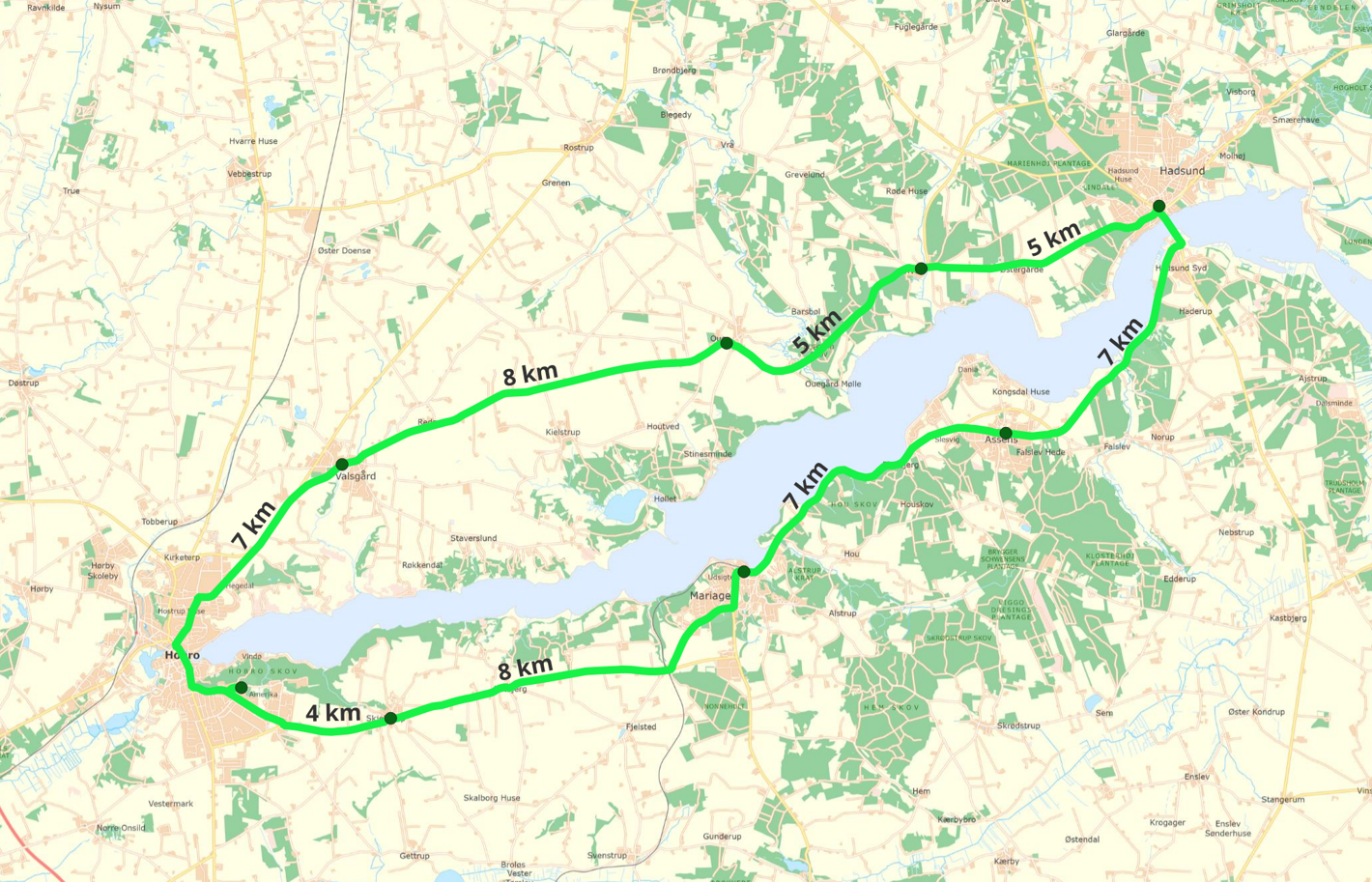 Hvor mange byer du vil besøge er op til dig - om du vil hele fjorden rundt eller tage turen til den nærmeste by og tilbage igen. Det handler ikke om at komme først, men om at være med og nyde naturen, den friske luft og fællesskabet på stien.