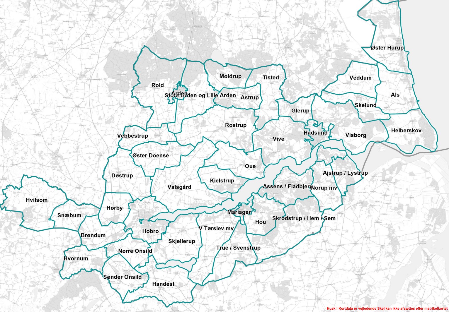 Kort over inddelingerne af Mariagerfjord Kommunes landdistrikter, kan du se nedenfor