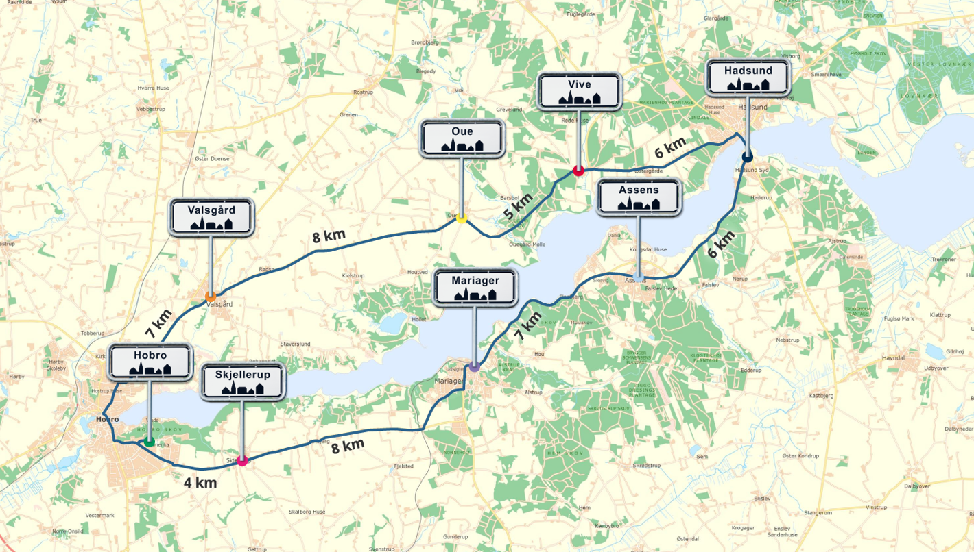 Hvor mange byer du vil besøge er op til dig - om du vil hele fjorden rundt eller tage turen til den nærmeste by og tilbage igen. Det handler ikke om at komme først, men om at være med og nyde naturen, den friske luft og fællesskabet på stien.