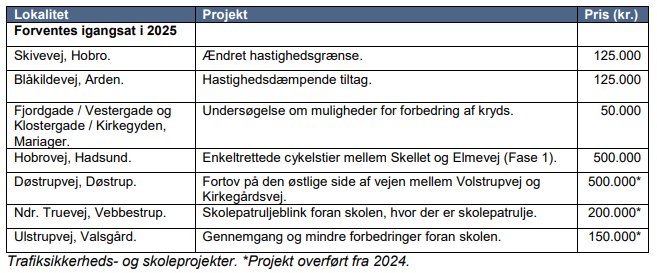 I det følgende er de trafiksikkerheds- og skoleprojekter, der arbejdes med i 2025 illustreret.