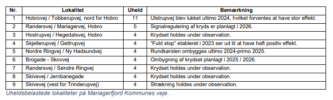 uheldsbelastede lokaliteter tilbage på vejnettet. Lokaliteter er udpeget som uheldsbelastede hvis: