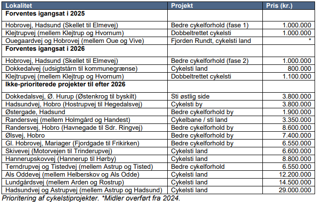 I det følgende er de cykelstiprojekter, der arbejdes med i 2025 illustreret.